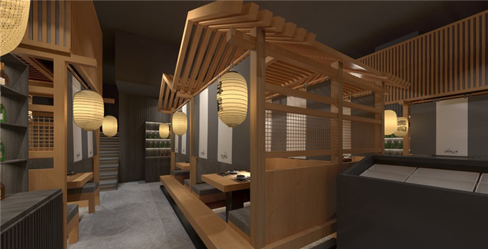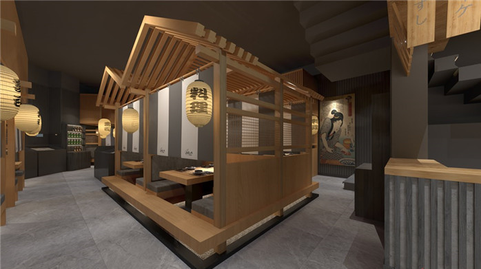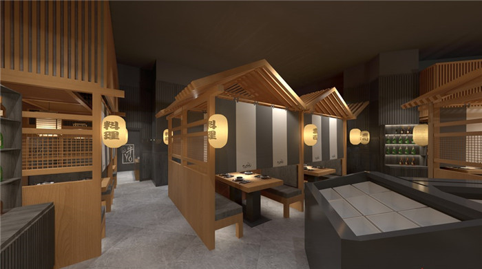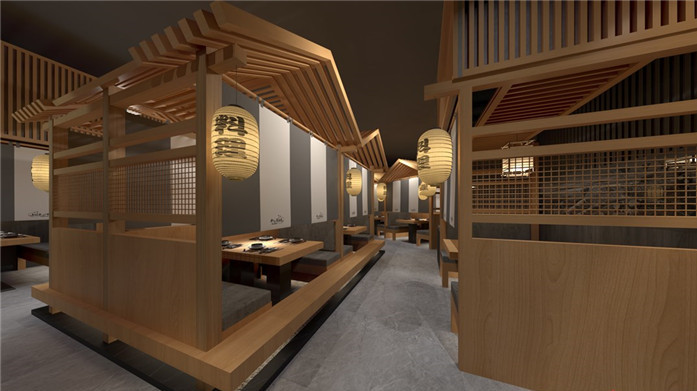 整體設(shè)計(jì)風(fēng)格上以日式精致私密性為主,每個(gè)餐臺(tái)都有獨(dú)立的隔斷進(jìn)行分割,這樣在整個(gè)空間中就會(huì)形成錯(cuò)落有致的空間布局,不僅美觀(guān)而且空間利用率高,同時(shí)保障了顧客就餐的私密性。