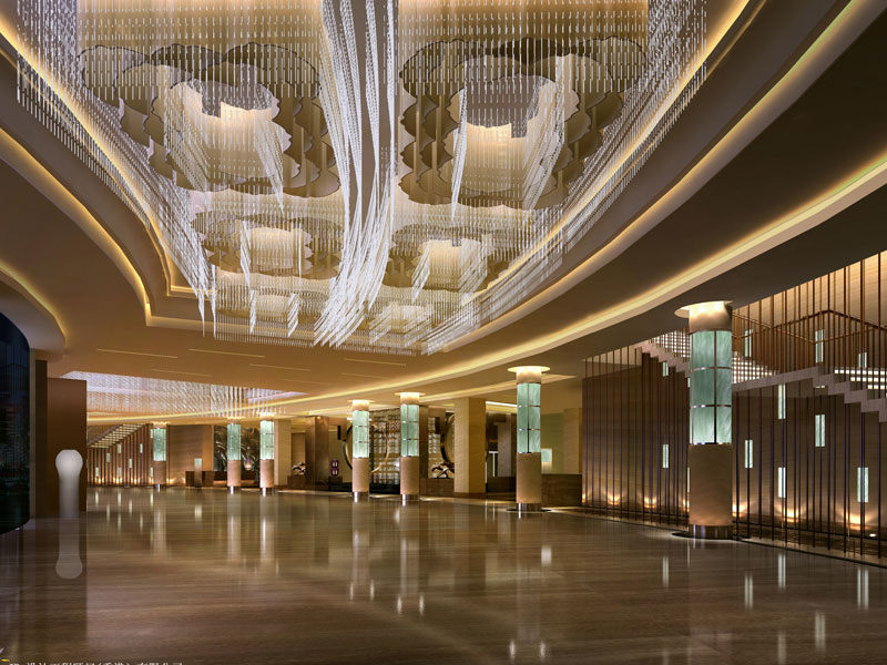 如果說(shuō)室內(nèi)是整個(gè)酒店建筑的延伸,那么大堂就是酒店的第一延伸體。大堂起著自動(dòng)篩選人流和空間的作用,是顧客感受酒店形象特征的一張名片,成功的酒店設(shè)計(jì)之大堂設(shè)計(jì)可以幫助酒店成功獲得好的第一印象??紤]到這一點(diǎn),大堂的處理方法可分為以下兩種: