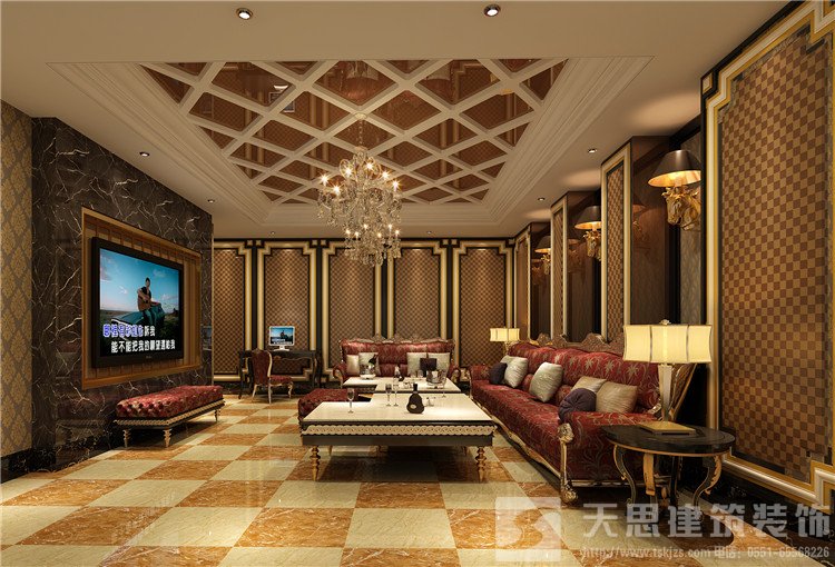 大廳是給消費者的第一印象,是KTV裝修設計的關鍵。KTV大廳設計中最重要的要素就是一定要寬敞明亮,無論你的門面朝哪個方位,大廳的設計都要符合風水的要求。大廳設計在材質(zhì)上要選用容易清潔的飾面材料,地面與墻面建議采用連續(xù)性的圖案和花色,這樣可以加強大廳的空間立體感。大廳的設計要有親和力,讓消費者一進門就能感覺到舒適。