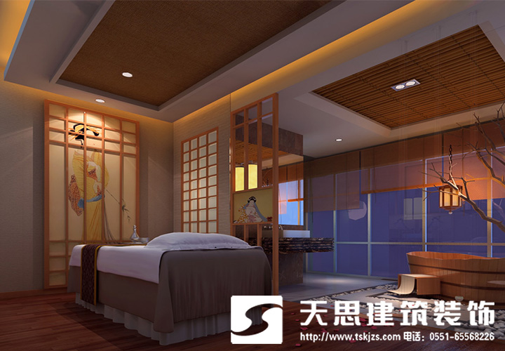 是指在整體設計中。spa房間的顏色種類不超過三種。整體以線條和整塊的色素來體現(xiàn)整體的干凈,舒適的感覺。