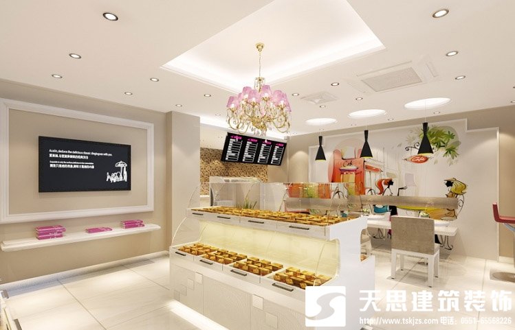 蛋糕店在進行裝飾的時候,外窗的采光,蛋糕的擺設等等.讓顧客一眼就能看見蛋糕店內(nèi)蛋糕,讓客戶非常的有食欲.這樣的效果是最好的.