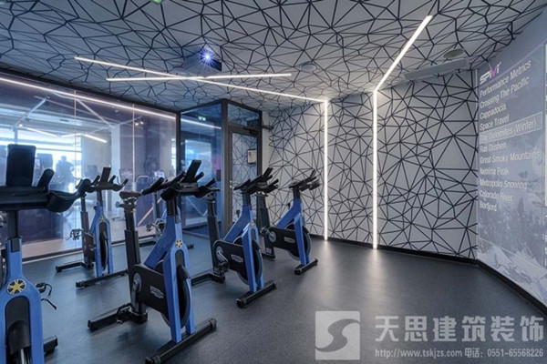 動感單車房的裝修和健身操房大同小異,但也要注意與整個健身房的融合統(tǒng)一。動感單車是一個特殊項目,具有極強的煽動性,可以即刻提升會員或參觀者的健身欲望,因此一般安排在整個健身房比較醒目的空間位置。
