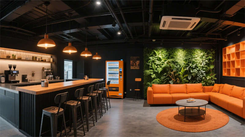 人性化細(xì)節(jié)貫穿各區(qū)域:電梯廳導(dǎo)向系統(tǒng)與隱藏式消防設(shè)施實(shí)現(xiàn)功能隱形化,員工休息區(qū)混搭工業(yè)風(fēng)吧臺(tái)與暖光沙發(fā),搭配咖啡機(jī)與綠植墻釋放壓力。設(shè)計(jì)同步植入環(huán)保理念,采用低能耗照明系統(tǒng)、空氣監(jiān)測(cè)模塊及可回收建材,構(gòu)建健康可持續(xù)的辦公生態(tài),傳遞企業(yè)面向未來(lái)的品牌價(jià)值觀(guān)。