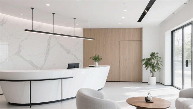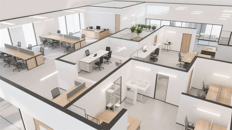 細(xì)節(jié)處理上,墻面采用簡潔的裝飾手法,避免過多繁復(fù)造型,地面材質(zhì)選擇耐磨且易清潔的種類,既符合辦公空間的實用需求,也保持了整體風(fēng)格的統(tǒng)一性。整體設(shè)計沒有多余的裝飾堆砌,而是通過對空間、色彩、材質(zhì)的精準(zhǔn)把控,打造出一個兼具美學(xué)感與實用性的辦公環(huán)境,讓辦公空間既簡潔大氣,又能滿足日常辦公的各項功能需求。