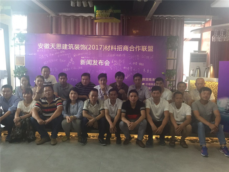 2017年6月4日,安徽天思建筑裝飾(2017)材料招商合作聯(lián)盟新聞發(fā)布會(huì)在合肥公司召開(kāi),來(lái)自合肥的三十余家知名材料商代表與天思裝飾公司領(lǐng)導(dǎo)齊聚一堂,共敘商情。在天思這個(gè)平臺(tái)上