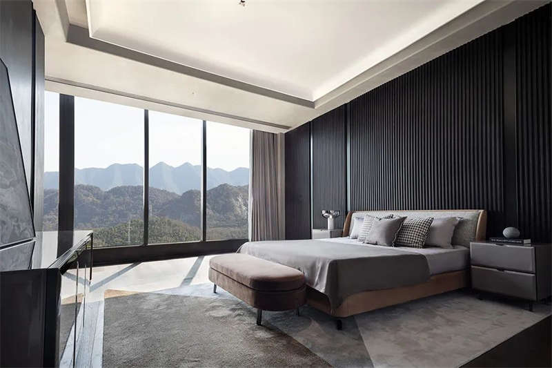 流暢的樓梯設(shè)計(jì)手法貫穿縱向空間,一氣呵成。黑白雙層欄桿扶手、無縫樹脂地坪和極具設(shè)計(jì)感的線性燈帶,把這種極致簡(jiǎn)約的設(shè)計(jì)風(fēng)格伸延到整個(gè)空間。