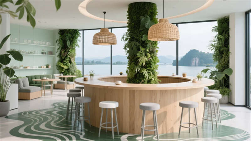 靜音艙與冥想穹頂成為平衡效率的呼吸點(diǎn):蕪湖鐵畫(huà)衍生的藝術(shù)裝置、赭山色系漸變墻面與苔蘚微景觀,在科技框架中注入人文溫度。生態(tài)茶歇區(qū)環(huán)形綠植柱呼應(yīng)窗外垂直花園,模糊自然與空間的界限。