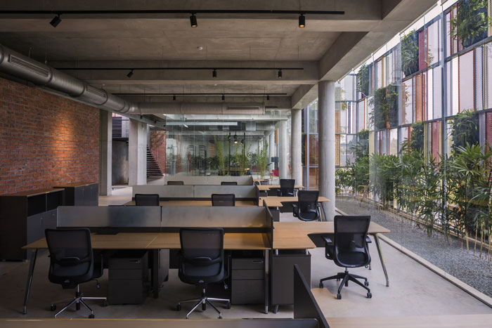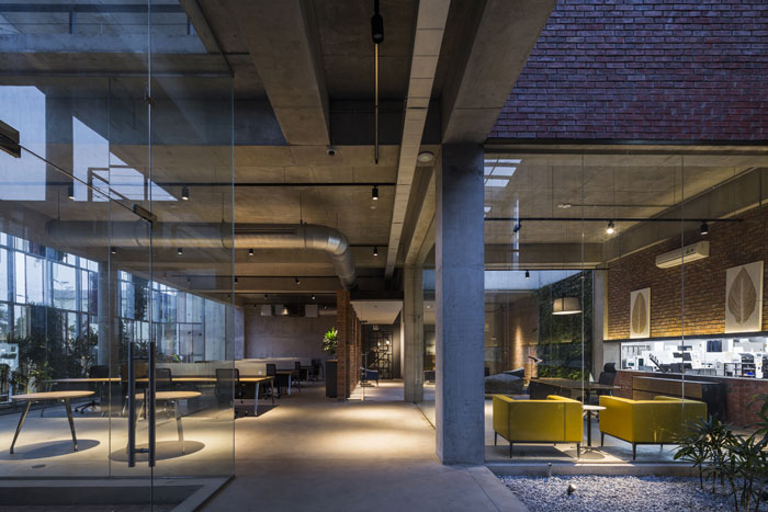 本次為工廠辦公大樓辦公室裝修設(shè)計效果圖,辦公室設(shè)計面積4000平方,設(shè)計師在辦公室設(shè)計中,以現(xiàn)場環(huán)境保持一致為前提,目的就是打造一個融合與廠房的辦公樓,而不是一個獨立的裝飾。