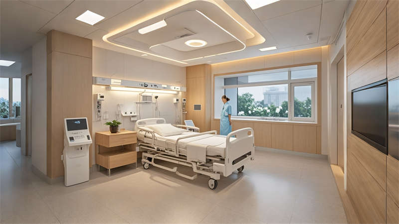 本8000㎡現(xiàn)代醫(yī)院設(shè)計以 ' 療愈型智能醫(yī)療 ' 為核心理念,采用模塊化空間布局。門診區(qū)運(yùn)用淺藍(lán)灰主調(diào)配木紋元素,通過色彩心理學(xué)緩解患者焦慮;醫(yī)技區(qū)采用高反射率材料增強(qiáng)空間通透感。創(chuàng)新性整合智能導(dǎo)診、空氣質(zhì)量管理及醫(yī)療物流系統(tǒng),病房單元設(shè)置多模式照明系統(tǒng),兼顧醫(yī)療操作與患者休憩需求。環(huán)??咕牧先采w,關(guān)鍵區(qū)域配置跌倒預(yù)警地膠系統(tǒng)。屋頂療愈花園突破傳統(tǒng)醫(yī)療空間限制,形成立體綠化體系。整體設(shè)計實現(xiàn)醫(yī)療功能、人文關(guān)懷與智能科技的有機(jī)融合,打造新一代智慧醫(yī)院樣板。