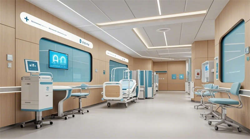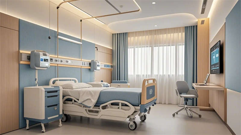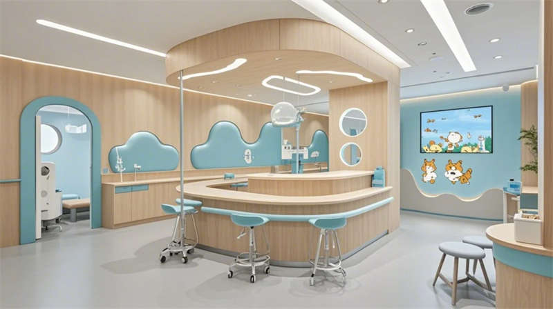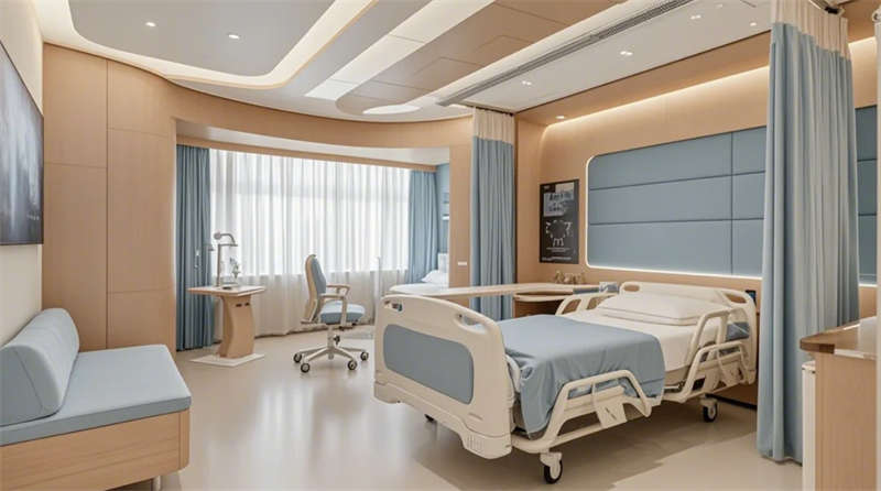 門診大廳以8米挑高空間構(gòu)建醫(yī)療門戶形象,曲面導(dǎo)診臺與智能分診系統(tǒng)形成高效服務(wù)樞紐,木紋格柵吊頂與綠植景觀墻弱化傳統(tǒng)醫(yī)院的冰冷感。兒科診區(qū)創(chuàng)新運(yùn)用馬卡龍色系與云朵軟包墻面,互動投影游戲區(qū)搭配動物主題診療設(shè)備,構(gòu)建兒童友好型醫(yī)療環(huán)境。VIP病房采用全景落地窗與智能護(hù)理系統(tǒng),可變形家具滿足陪護(hù)與康復(fù)雙重需求,展現(xiàn)高端醫(yī)療的溫度感。