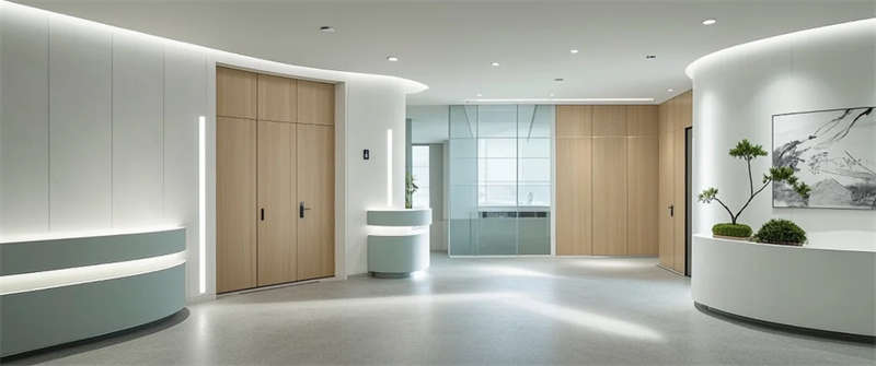 這個(gè)醫(yī)療空間以自然療愈為語(yǔ)言重塑傳統(tǒng)醫(yī)院體驗(yàn)。建筑內(nèi)部流動(dòng)的淺木與灰綠色系,搭配原生綠植景觀墻,模糊了室內(nèi)外邊界,讓自然光與綠意成為治愈媒介。門(mén)診走廊的弧形墻面消解機(jī)構(gòu)冰冷感,兒童診區(qū)的森林投影與云朵軟包,用敘事化設(shè)計(jì)緩解診療焦慮。