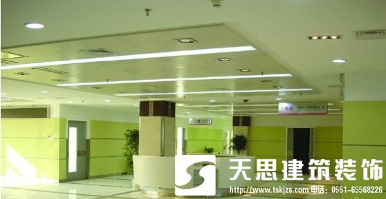病房——橡膠地板。衛(wèi)生間、開水間、消防梯及通道——地磚。門診樓、行政辦公、科教室——防滑地磚??蒲?、檢驗——防靜電地板、防腐蝕地磚。天花,除門診大廳、電梯廳、過廳等公共空間外,可采用半隱式輕鋼龍骨防水石膏板吊頂。墻面——殺菌彩色乳膠漆。