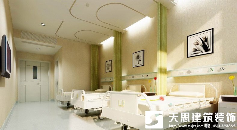 一般醫(yī)院多為一間病房有2~3間病床并配有衛(wèi)生間,病房門入口凈寬應為1050mm,以保證單架車出入,門套應能抗沖擊。壁柜按每床600mm即可。座便器選用后背懸掛式對清潔有利。床頭柜可用懸掛式。天花不易有多種造型,多用礦棉板或紙面石膏板。輸液架預埋龍骨。燈光應多路控制。開窗為內(nèi)倒開為宜,以滿足通風、安全防護、方便清潔三種需要。入門口玻璃要選擇透明無色。